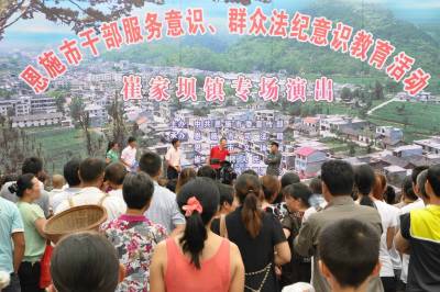 中共恩施市委精心组织,该市司法局、文体局、非遗展演中心及各乡(镇、办)联合承办,乡镇各行政执法部门联合参与的“两个教育”活动,旨在增强干部的服务意识、法纪意识和群众的学法、守法意识。以期促成依法行政、依法维护的社会共识。