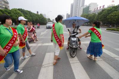 宜城义工引导群众遵守交通规则