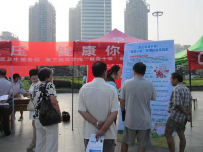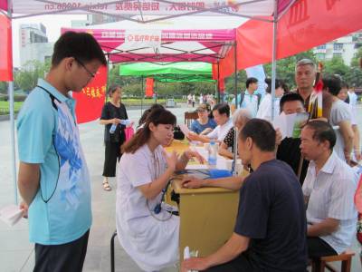 近期,湖北医药学院第三临床学院“健康十堰”暑期社会实践团队深入各社区、郧县传播高血压健康知识,向患者了解其健康知识教育需求,并联合五堰南街社区卫生服务站在人民广场开展爱心义诊活动。