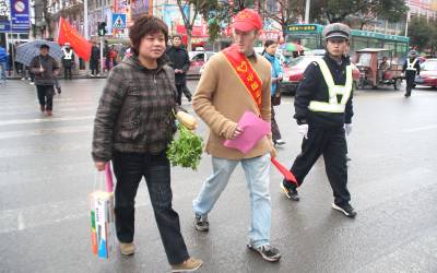 3月5日,恩施职业技术学院外教戴蒙恩在恩施街头当起了义务交通劝导员。当日是”学雷锋纪念日”,恩施市交警大队联合恩施职业技术学院百余名师生在恩施市各繁忙路段开展学雷锋志愿者活动。