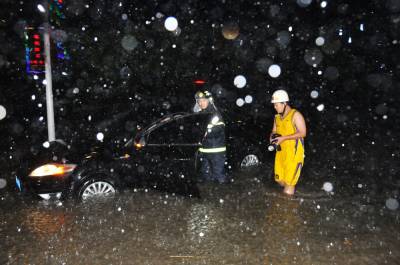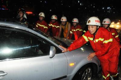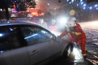 7月17日晚9时至12时,郧县发生强降雨,城区多处低洼地被淹,一些厂房被洪水冲毀,一些车辆被淹在低处街道上,城关镇两幢住宅楼一搂被淹。郧县消防大队从晚上10:40开始接救援电话到天明共收到30多个求援电话,该大队派出所有车辆和官兵各处水中抢险救援至天明。 夲报视界网周家山 王林摄