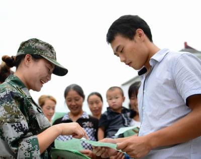 政策送上门 动员做到人 7月20日,建始县高坪镇青里坝村4组,镇女子民兵连民兵正在向该村大学毕业生刘吉祥宣传今年征兵优惠政策。 为切实做好夏季征兵工作,该镇人民政府征兵办公室组织专武干部、女子民兵、计生干部包片包村,与当地村干部一道爬山涉水,利用暑假期间,及时将国家征兵优惠政策送到高中毕业生、在读和大学毕业生等每位适龄应征青年家中,动员工作做到人,积极动员,呈现踊跃报名应征喜人景象。本报视界网刘波、韩国兴摄 建始县新闻中心刘波联系电话13032794298