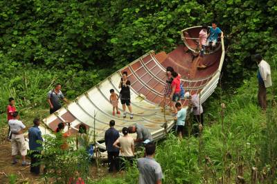 据清坪镇排丰坝村三组大堡上的村民韩志梅介绍,整流罩坠落时,她正在院子里干活,突然听到几声巨响,就像木料从高处掉到楼板上的声音,一个银白色的船形物体伴随着巨响飘落下来,坠落在她家对面一个叫姜文槽的山洼里。