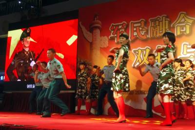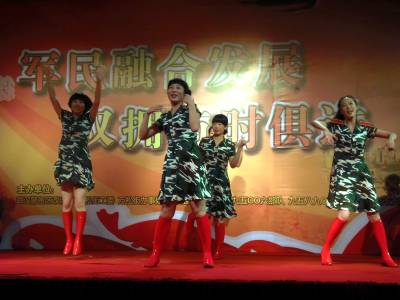 7月26日晚,以"军民融合发展双拥与时俱进"为主题的庆祝建军86周年文艺演出活动,在汉口西园举行。为前来观赏的军民和纳凉逛街购物的市民群众,送上了丰富多彩清凉一"夏"的精神食粮。此活动由解放军武汉警备区政治部与驻地武汉市江汉区万松街工委办事处共同主办,民盟武汉市委会、九五○○六部队、九五八九○部队、武警武汉市支队协办,在长达1个多小时的《人民军队忠于党》等8个文艺节目和双拥共建有奖知识抢答中,军民同上载歌载舞,台下争先恐后抢答,展现了新形势下的军民鱼水情,共驻共建携手谱新篇的生动感人场景。