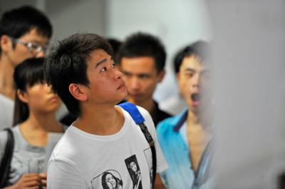 夏日炎炎,武汉招聘市场却异常火爆,大批高校未就业毕业生错峰求职,突围最难就业季。昨日(2013年7月27日),武昌纳杰人才市场里人头攒动热闹非凡,在此举办的湖北高校未就业毕业生专场招聘会上,进场的800余家企业共提供18000余个岗位,当天进场求职者近8000人,其中超过半数为应届毕业生,现场达成初步用工意向的近三成。(记者 李溪 本报视界网 章俊 摄 )