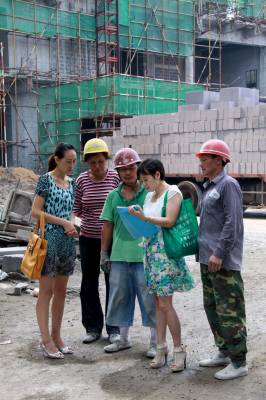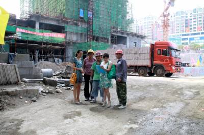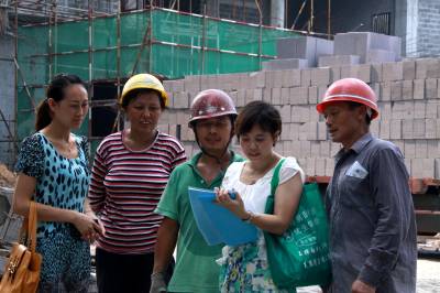 7月27日,秭归县茅坪镇西楚居委会计生工作人员周朝晖(右起二)、乔长玉(左起一)冒着酷暑到城区一处建筑工地走访调查流动人口,并向他们广泛宣传计生基本国策。据悉,该县计生部门从今年起严把流动人口管理关口,通过细化管理措施、优化计生服务,赢得了广大流动育龄人口的一致好评。