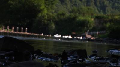 在农村,很多河流都没有桥,连接两岸的是老百姓选来的大石头,老百姓过河就得从上面走,因为每一块石头相距甚远,所以走起来就像是在跳一样,故而老百姓形象的称之为“跳岩”。