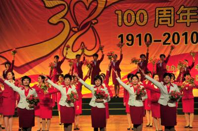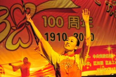 2010年3月8日,,湖北省宜昌市夷陵区举行”庆百年‘三八’、展巾帼风采”文艺汇演,1000多名妇女同胞欢聚一堂,庆祝”三八”国际妇女节100周年。现场200多名机关女干部还表演了自编自演的文艺节目,大家用各自的舞步,舞出了夷陵妇女的风采与骄傲,欢快地度过了一个愉快而有意义的妇女节。