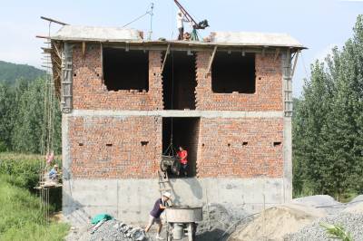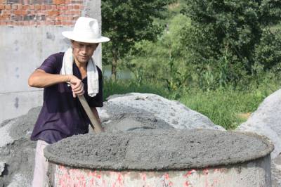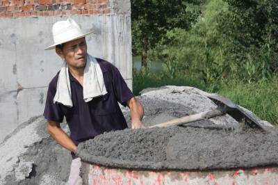 战高温兴水利 水利带来大效益 7月30日,施工人员正在〝小农水〞工程工地上施工。竹溪县水坪镇沙坝村、康家岭村〝小农水〞建设工程基本完工。该工程除了向周边种粮农民提供农作物灌溉、人畜饮用水外,还能为该县牛头山水库提供可靠地供水来源。去年排险加固后的牛头山水库地理位置十分独特,水库连接该县人口最集中的老城区和东城新区。7月21日,安徽老板万世伟看好库区的地理位置及生态环境,计划投资8亿元对水库进行开发利用,打造牛头山生态旅游观光农业。(视界网 王忠春 摄)