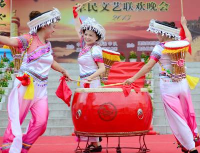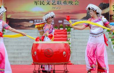 “鼓,是中华民族古老的传统乐器,以鼓作舞,鼓之舞之,鼓来进行舞蹈,形成一种民间的鼓舞形式,从远古到现在,我们的生活已离不开鼓舞。土家背鼓起源于当地群众喜闻乐见的“丝弦锣鼓”和“花锣鼓”, 不断进行挖掘、整理和创新,其精彩表演,特有特别土家韵味,鼓舞人心,成为当地文化品牌。 当日,以《土家背鼓》为主的文艺节目,把军民联欢推向高潮。本报视界网刘波摄