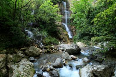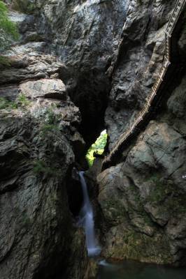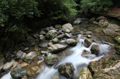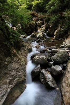 一水天上来,激荡起回声。山溪急奔而下,如花四溅,如鼓似笋,交融两岸的鸟语声,宛如一部峡谷奏鸣曲。在炎热夏季,徜徉其间,那份清凉、舒爽,让人沉醉。