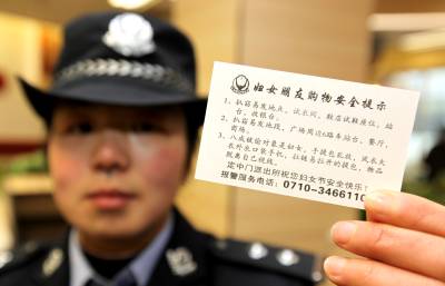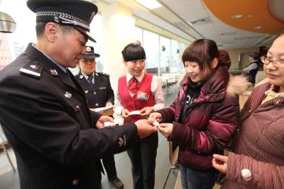 3月8日,针对湖北襄樊人民广场商业场所被盗对象八成为妇女,樊城定中门派出所在三八妇女节当天将专门印制的”妇女朋友购物安全提示”卡发放到人民广场周边各商业购物场所妇女手中,以提示妇女同志在购物当中注意防盗。本报通讯员杨艳记者余翔摄