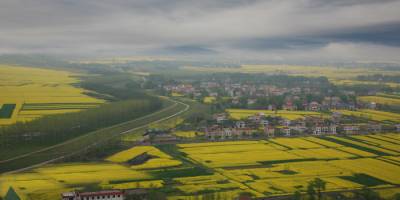 油菜花开的时节,鸟瞰汉江两岸景美如画。