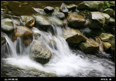 武当山猕猴区,山涧溪流清澈见底,景色宜人。