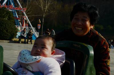 冬日,和煦的阳光照在身上暖阳阳的,奶奶抱着小孙女在公园里玩,心里也是暖暖的,小孙女开心的坐在玩具车上,奶奶笑得无比灿烂!生男生女一样好,女儿也是传后人!