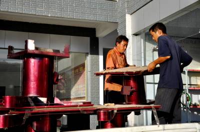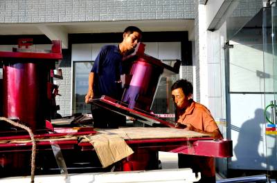 7月31日,在恩施市红土乡农业服务中心,工人正在搬运“节能炉”。