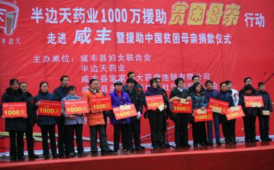3月8日,湖北省咸丰县12位贫困母亲收到半边天药业每人1000元的现金援助。半边天药业从5年前启动的援助贫困母亲活动已救助全国各地上千位贫困母亲。当天,该企业还向当地妇女免费发放价值2万元的药品。