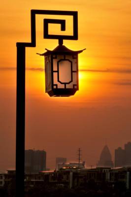 落日熔金映古宅