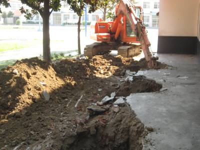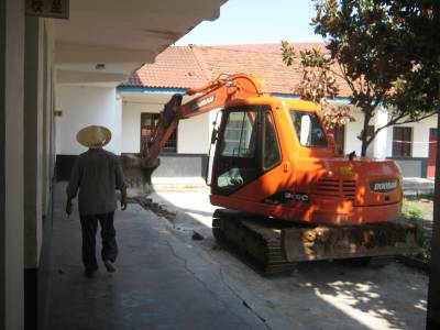 8月1日,一台挖掘机驶入宜城市刘猴小学开始施工作业,此举标志着该校学生宿舍楼改造工程正式开工。 据悉,该校将在原有宿舍的基础上,改建6间洗漱间和卫生间,另外对宿舍楼实施整体加固,对宿舍楼墙面进行全面维修,同时,配套修建下水道、化粪池、排水沟等设施,该工程将在今秋开学前完工,工程完工后,该学生宿舍将具备容纳300名住宿生的能力,极大改善边远村落学生的居住条件,能有效解决住宿生如厕难、洗澡难的问题。(本报视界网 周卫华 摄)