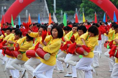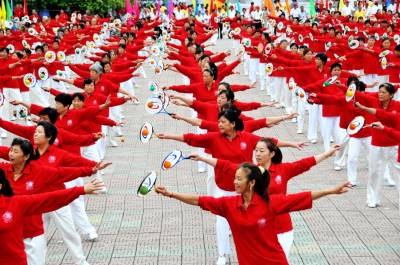 8月2日晨,郧县在郧阳文化广场举办有1200人参加的太极健身操展示会演,同时表演了太极柔力球和腰鼓会演。此次活动是推动2013年全省 “全国千村健身全气功交流展示”系列活动和十堰市“全民健身日”活动。 夲报视界网周家山 摄