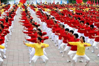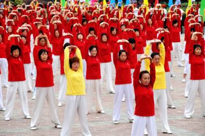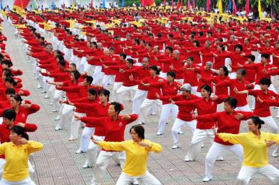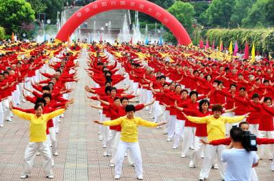 郧县举1200人太极健身操会演