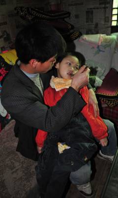 湖北省利川市凉雾乡七里沟二组村民郭方友、付白银夫妇9岁的孩子郭鑫、4岁的孩子郭富涵均患有先天性脑瘫疾病,至今不能说话、不能走路、不能自己吃饭。9年来,夫妇俩为治孩子的病,先后花了10多万元医疗费,均不见疗效,现在家中已是一贫如洗,负债7万多元,夫妇俩盼好心人拉一把。
