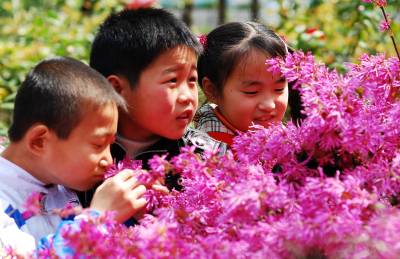 3月10日,武穴市第二实验小学的学生在校园的植物园里欣赏鲜花。当日,天气晴朗,师生徜徉在鲜花盛开的校园,尽情享受春天的美丽。本报视界网刘飞摄