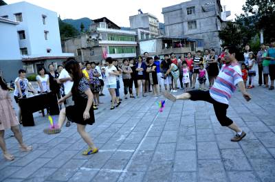 8月7日晚,在恩施市红土乡中心文化广场上,举行趣味运动会。