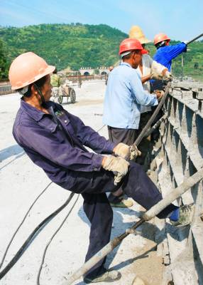 2013年8月7日,谷竹高速竹溪段32合同段施工人员冒着气象部门播报高达40摄氏度,被烈日烘烤上近50度高温的高家湾大桥上如火荼施工。
