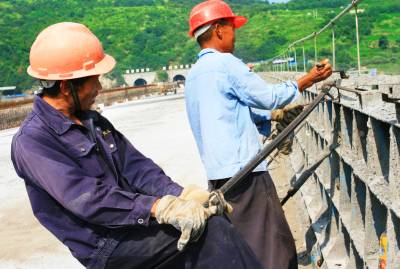 谷竹高速建设者战高温抢工期