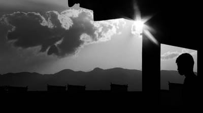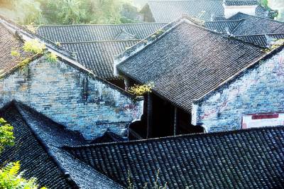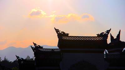 落日熔金映古宅