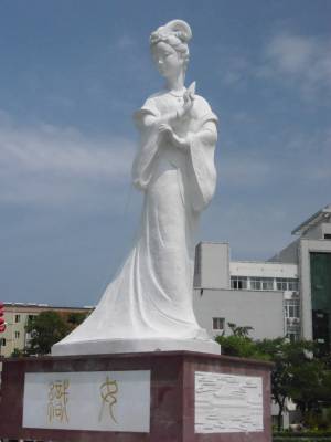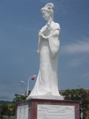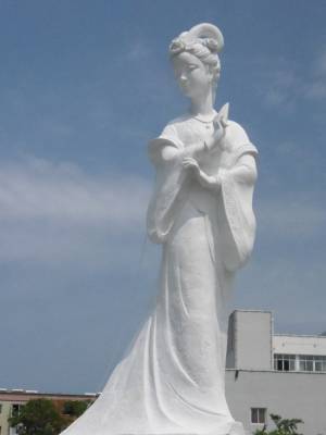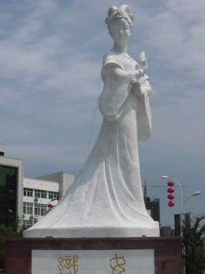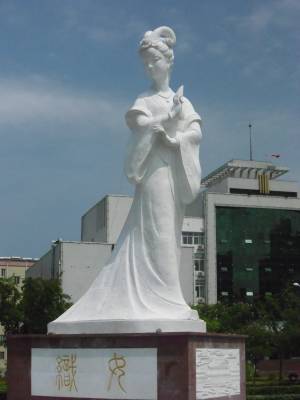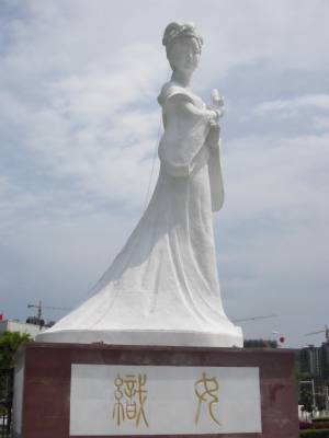 织女雕塑位于郧西七夕广场北侧,紧挨着铜牛。牛郎织女这对患难夫妻过去分居泪满襟,如今团聚说情话。这座由河北新锐雕塑石材有限公司承制的织女雕塑高14米,重量达200吨,石材材料为汉白玉。