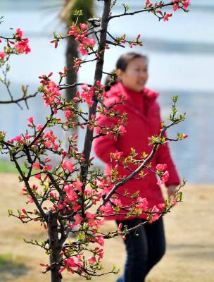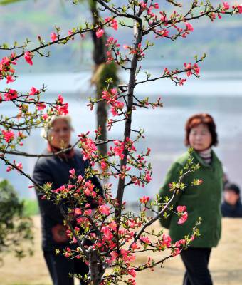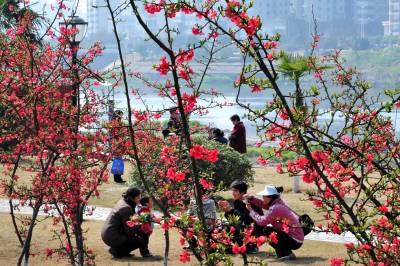 2010年3月10日,湖北宜昌市夷陵区小溪塔河滨公园里鲜花陆续绽放,一朵朵鲜艳的桃花增添了浓浓的春意,吸引了众多市民踏春欣赏美景。本报视界网张国荣摄