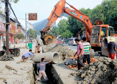 进入8月份以来,持续高温.酷暑难挡,但南漳县长坪镇街道下水道建设工程却如火如荼的进行着。该镇决定不盖办公楼后,把筹集到的资金用来建集镇下水道和街道路灯建设。 该镇原打算筹集资金把办公楼推倒重建,改善办公条件。但在进入夏季和汛期后,由于街道一边没有下水道,每逢下雨天积水成潭,过往车辆和行人极为不方便,决定把盖办公楼筹集到的30万元资金拿出来先建下水道和添加街道路灯未延伸到的路灯。建下水道1000米,添加路灯26个,总投资近30万元。 (通讯员 晏光辉 杨德明/摄)