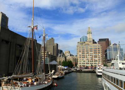参观完麻省理工学院和哈佛大学,然后乘游船看波士顿全景。游船规定一层用英语解说,二、三层用汉语解说(此举可理解为波士顿对华人的尊重),因此,我们登上了游船的顶层甲板,边看边听讲解。解说员是个女的,先生说听口音像武汉人,普通话不是很标准,但感觉很亲切。在游船上看波士顿,映入眼帘的是一座座现代建筑,鳞次栉比,煞是壮观。一路辛苦,此时登上游船,享受着凉爽的海风,观赏着绮丽的城市风光,听着带家乡口音的解说,岂不美哉乐哉!