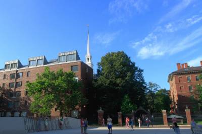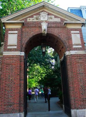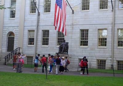 哈佛大学(Harvard University),首推为美国最好的大学。学校成立于1636年,比美国作为独立国家的建立几乎要早一个半世纪,是美国历史上第一所高等学校。它有近15亿美元的资产,拥有全世界规模最大的图书馆、第一流的学者教授及千里挑一的学生。到目前为止,哈佛共出过6位美国总统,33名诺贝尔奖金获得者和32名普利策奖获得者,是常春藤盟校的八名成员之首,赢得了举世公认的学术口碑和崇高的国际声誉。据导游介绍学校最早只有10个学生,1个老师。当时一位叫约翰.哈佛的绅士将所有资产约合几百美金捐赠给该校,使得学校慢慢开始发展壮大,为了纪念他,于是用他的名字命名学校。由于学校建筑是逐步扩展建造的,因此,街道学校融合,校区无明显标志。学校是私立的,因此学校经济是当地主要经济支撑,据说入哈佛读书,学费生活费一年要近10万美金。导游将我们带到哈佛“猪头门”外,给我们45分钟自由参观校园。所谓“猪头门”,其来历是哈佛赛艇校队在高校赛艇竞赛中赢得冠军,本应杀羊庆祝,但只找到一头猪,便将猪头挂在此处,因此而得名。我们看了图书馆、教堂、学生公寓等古老建筑,碰到每一个学生,都向他们投以羡慕与敬佩的目光,也许其中一个就是未来的总统或诺贝尔奖获得者。由于时间有限,匆匆游览一圈,拍照,然后前往麻省理工学院。