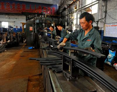 当日是东风汽车悬架公司高温检修后的第一天生产,笔者在现场看到整个生产井然有序,一片忙碌的景象。