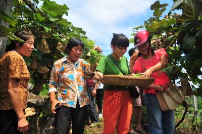 葡萄园体验采摘乐 8月9日,游客在恩施市龙凤镇吉心村葡萄园采摘葡萄,体验劳动带来的快乐。 该村拥有葡萄园800余亩,种植户达到200余户,目前,有200亩葡萄上市陆续上市,吸引着市民前来采摘,今年该村葡萄可为农户增收150余万元。 本报视界网 谢顺 康益 摄 恩施市新闻中心记者 谢顺 13277590198