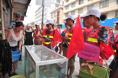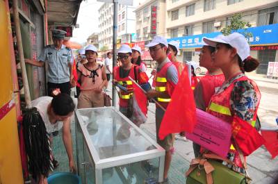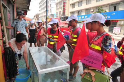 村官上路“导航”文明(村官一线实践体验集镇管理、村官“第一课”) 8月9日, 村官在街头宣传“门前四包”制度及交通法规政策。 恩施市龙凤镇把体验集镇管理作为村官培训的“第一课”,当天,该龙凤镇36名村官和城管队员一起,分组上路,分发传单,体验集镇管理工作,确保交通顺畅,倡导文明出行,为集镇文明“导航”。 通讯员 谢顺 康益 摄 恩施市新闻中心 记者 谢顺 13277590198