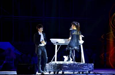 2013世界旅游小姐中国赛区总决赛晚会上,著名歌唱家杨洪基老师、玖月奇迹组合王晓伟、王小海,《中国好声音》选手倪雅丰现场助演。 摄影:朱 伟 地址:丹江口市林业局 邮编:442700 电话:13797830188 邮箱:djkzhuwei@163.com 网站:djklyw.gov.cn