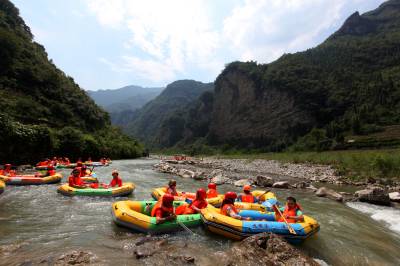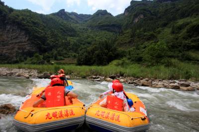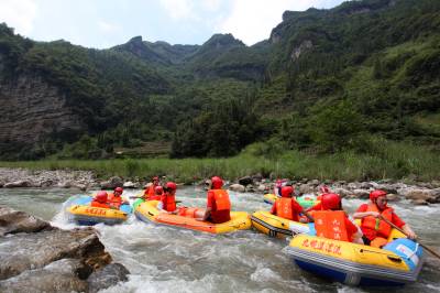 8月9日,酷暑肆虐,数千名游客涌向长江西陵峡南岸的九畹溪漂流避暑,山清水秀,景色怡人,引得男人一路欢笑,女人一路尖叫。