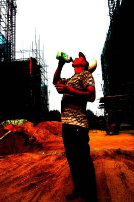 连日来,持续高温暑热,劳动者在工地、在田间,冒着高温酷暑建设自己的家园!2013年8月上旬摄于云梦城乡。视界网 陈保忠 摄