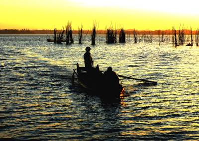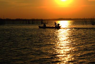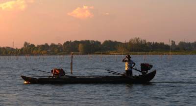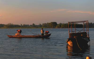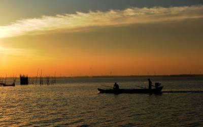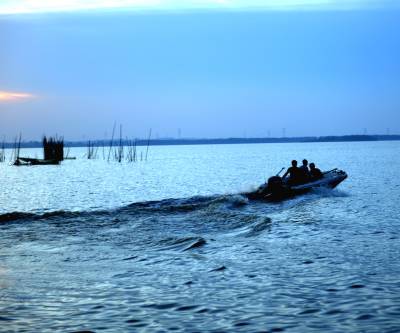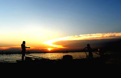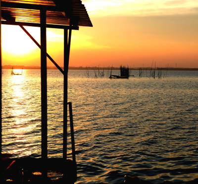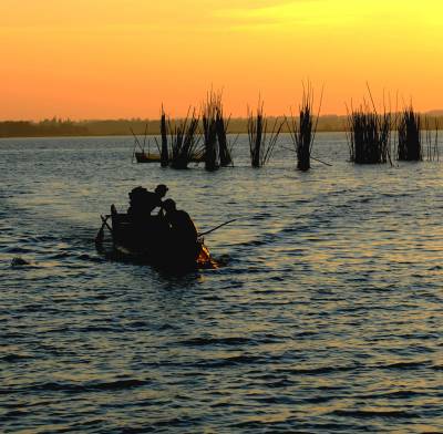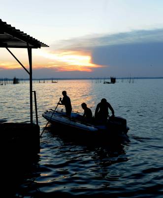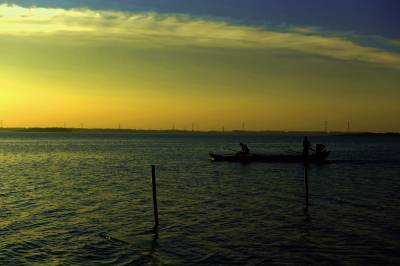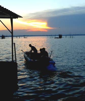 2013年8月8日,下班后驱车前往距市区30余公里的西部湖区—一龙赛湖。龙赛湖位于本市陈河镇,是个改道后的水乡湖泊,面积近万亩,盛产毛蟹,甲鱼及本地野生鱼。是我市著名的水产基地。来时正值酷暑,热浪考人。到了湖边,只觉湖风阵阵,倒也稍许凉意,和几个渔工携手共拍之。
