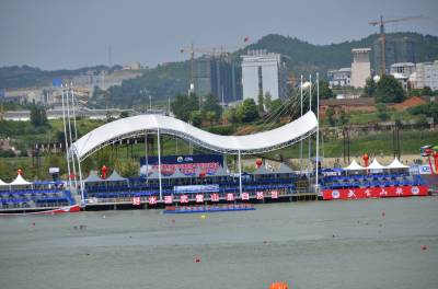 此次丹江口大奖赛赛场设置上,融合了丹江口山水特征和文化底蕴,在右侧的运动员围场区开辟了太极广场,精心设计太极八卦水上赛道,为比赛增添了挑战和观赏性。赛场设置在沧浪州生态湿地公园,背靠丹江口大坝,无论赛场环境,还是观赏视角,都非常理想。开幕式上的武当武术表演和祈福仪式都蔚为壮观。