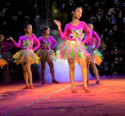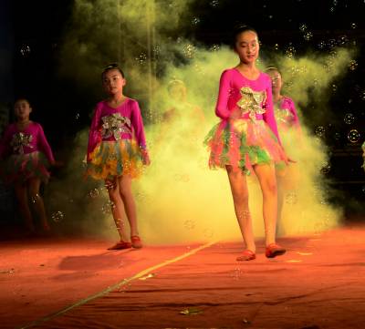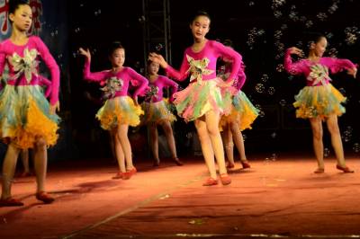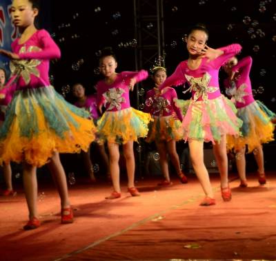 8月10晚,小演员们在跳活力四射的舞蹈《最炫民族风》。连日来,在老河口的抗战广场每晚都举行主题为“文化互动 河谷共舞”的纳凉消暑晚会。该活动有老河口市和谷城县联合举办,两地的文艺工作者和文艺爱好者们为老百姓献上了喜闻乐见的戏剧、小品、舞蹈、独唱等独具地方特色的文艺节目。两地以文艺搭台,促进了各方面的发展和交流。