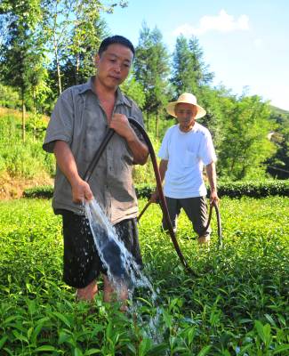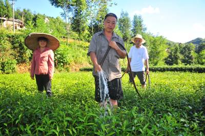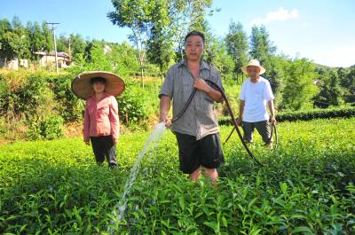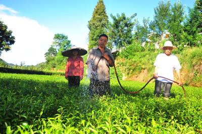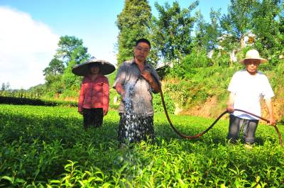 茶园抗旱护苗 8月11日,恩施市芭蕉侗族乡戽口村村民谢敏一家,为自家茶园苗圃浇水抗旱。 连日来,恩施市持续高温导致茶园大面积缺水,部分茶苗枯死,该市茶农自发投入到抗旱护苗当中,为茶苗送上“保命水”。 通讯员 谢顺 摄 恩施市新闻中心记者 谢顺 132775901098
