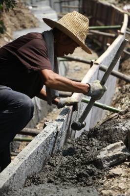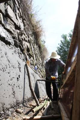 12日,工人在竹溪县颜家街村修建堰渠。7月以来,竹溪县一直饱受高温及干旱少雨“烤验”,20余万亩旱地、5万余亩水田受旱严重,该县积极抗旱,调运水泵、组织人力修建水泥堰渠,引水抗旱,以保秋粮受旱不减产。