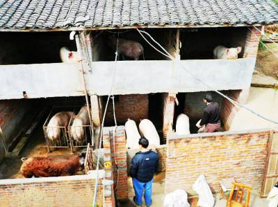 8月12日,年出栏生猪200头,年均纯收入20余万元的郧县五峰乡大树垭村生猪养殖大户兰永信,在给即将出栏的生猪催肥。“热天热地热太阳,牲畜催肥它就长。”整个伏季,郧县五峰乡20多个牲畜养殖大户抓住机遇,完善设施,强化栏圈卫生,为牲畜降温催肥,力争出伏后,将肥畜卖个好价,实现增收翻番目标。(本报视界网周宗华摄) 作者地址:郧县五峰乡政府
