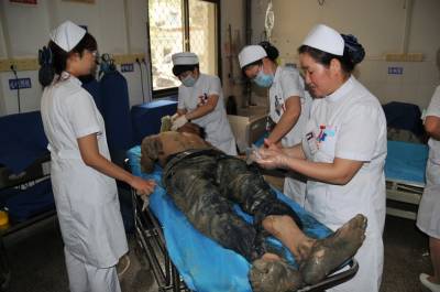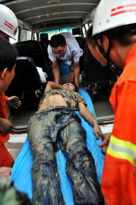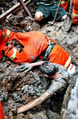 7月12日下午,郧县公安消防大队接到报警郧阳花园内施工地下排水道工地一民工被塌下来的土方埋住,消防官兵迅速出警,来到塌方处采用锹挖,受环境局限又怕伤到被埋民工最后采用瓟在泥里用手挖,17点43分将被埋民工25岁民工赵全章救出来送上救护车,经郧县人民医院急救中心医护人员的检查没有重伤,民工赵全章正在住院观察。 夲报视界网 周家山 王林摄