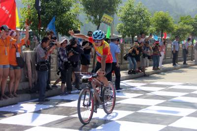 8月17日,选手们在山地间骑行。 当日,2013年宣恩首届全国环“千户土家”山地自行车赛在湖北省恩施土家族苗族自治州宣恩县椒园镇水田坝村举行。千余游人和运动员在亲近美丽大自然的同时畅享运动乐趣,欣赏鄂西“千户土家”美景和庆阳老街原始风貌。